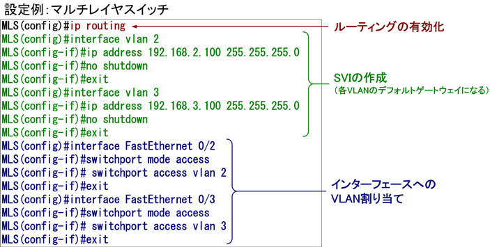 マルチレイヤスイッチに必要な設定は以下の通りです。