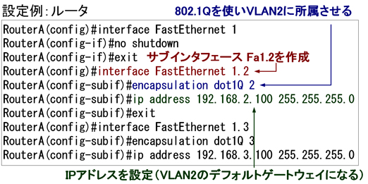 ・サブインターフェースにIPアドレスを設定