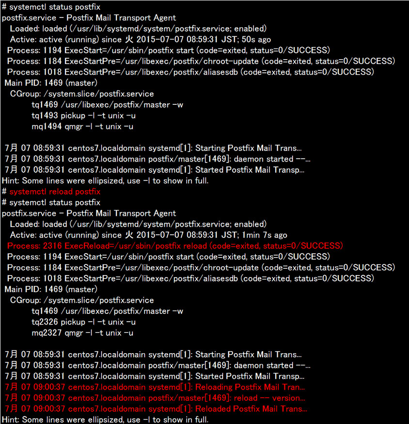 サービスに設定ファイルを再読み込みさせるには、reloadサブコマンドを使用します。