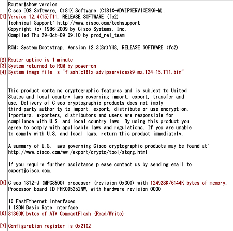 「show version」コマンドで確認できる情報はどれか(全て選択)