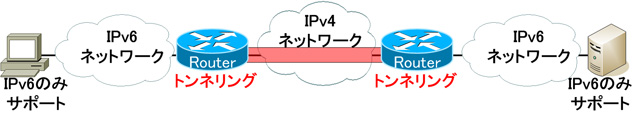 ・IPv6ネットワークの間にIPv4ネットワークがある場合はトンネリングを使用する