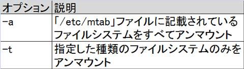 逆に、マウントされているファイルシステムを切り離し、マウント前の状態に戻すことを「アンマウント」といいます。
