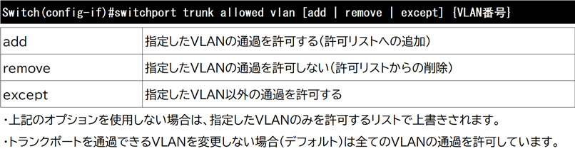 【コマンド構文:トランクポートを通過できるVLANの変更】