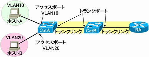 トランクリンクではIEEE 802.1Qを使用して、VLAN情報を識別します。