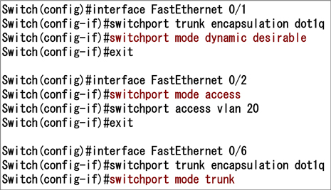 (config-if)#switchport mode {access | trunk | dynamic {auto | desirable}}