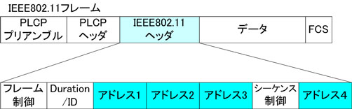 無線LANで使われるIEEE 802.11ヘッダは以下のフィールドで構成されます。