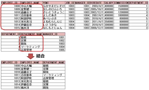 Oracle Databaseでは、複数の表を関連付けデータを取り出すことができます。複数の表を関連付けることを表の結合といいます。