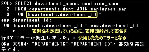 表別名を定義した表に対し、元の表名を表接頭辞として指定することはできません。