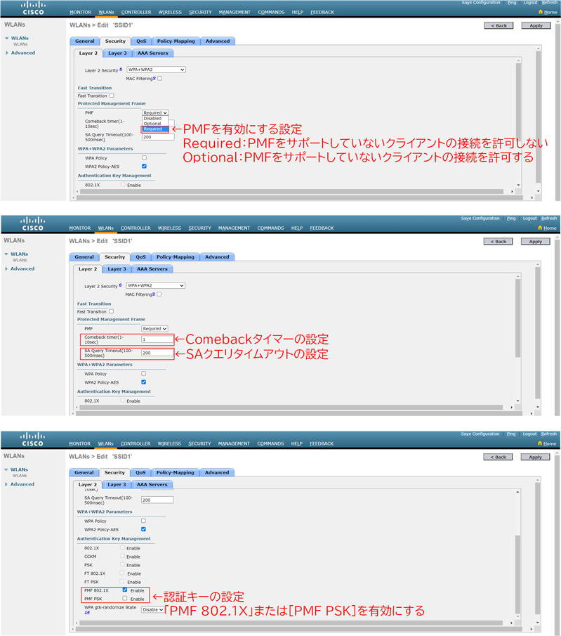 WLCでPMFを有効にするには、以下のような設定を行います。
